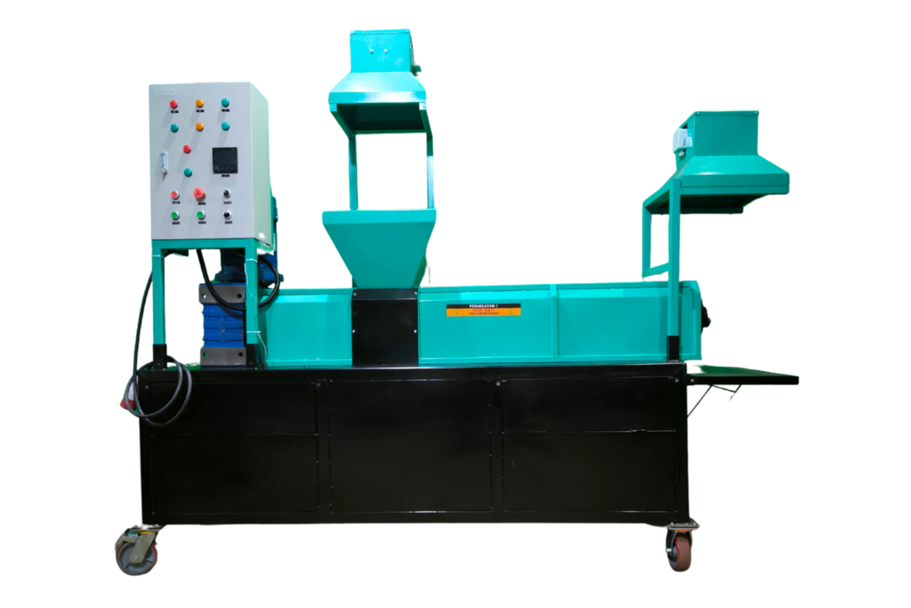 - Fitur tambahan : Penghisap asap pada bagian hopper dan output mesin