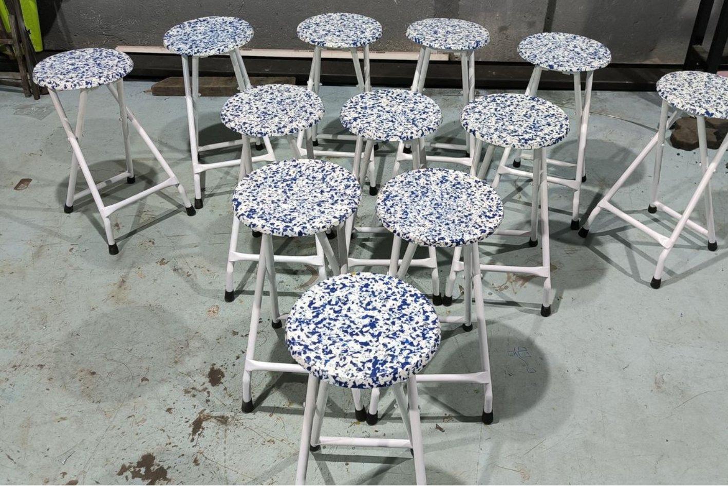 - Material rangka : Baja dengan coating akhir warna hitam dan tosca